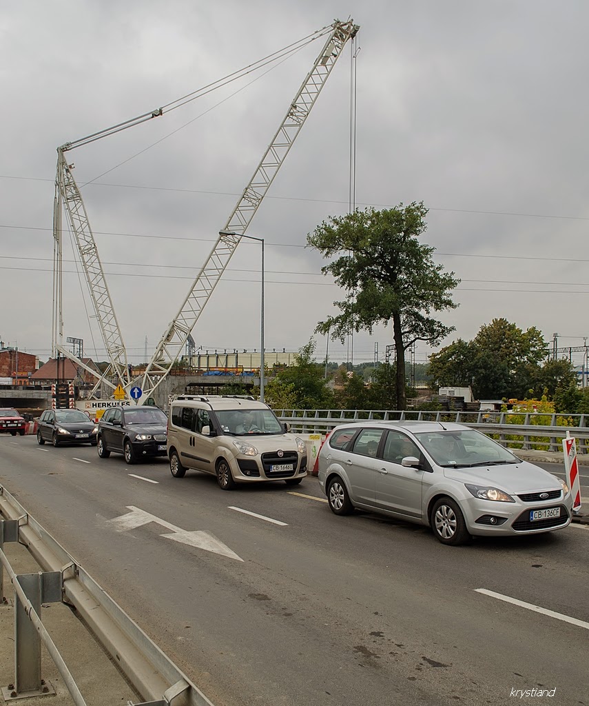 Przy remoncie wiaduktu kolejowego nad Grunwaldzką pojawił się żuraw Herkules, to znak że niedługo rozpocznie się kolejny etap remontu. Druga część wiaduktu zostanie nasunięta no swoje miejsce.
