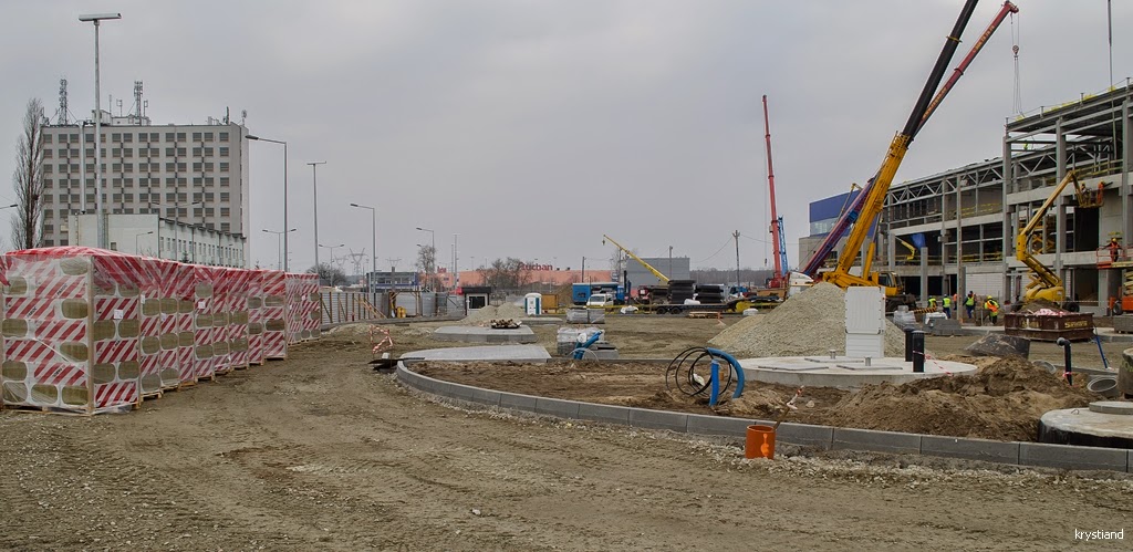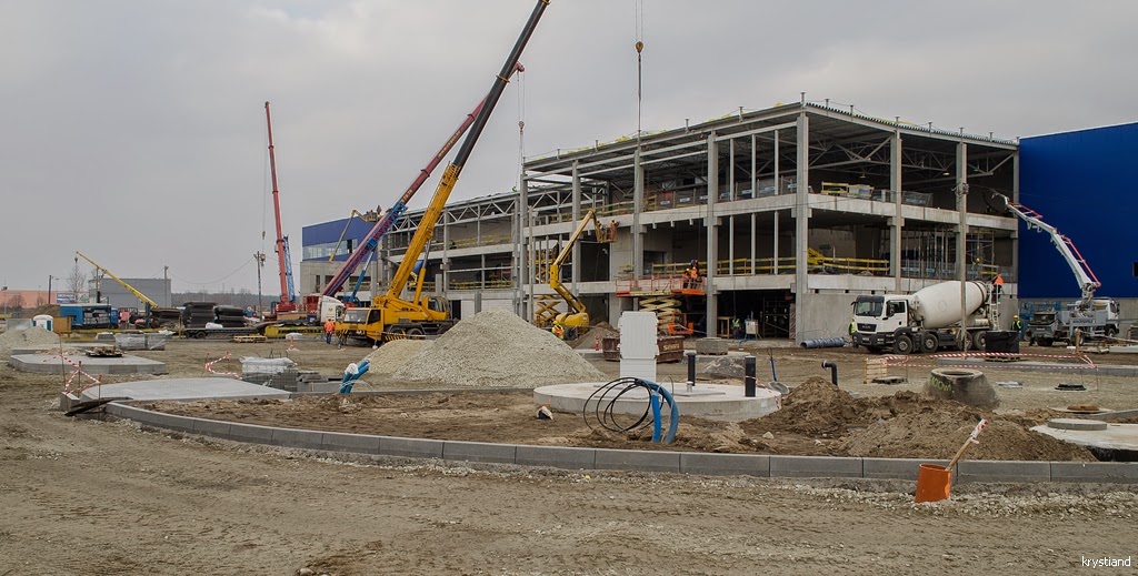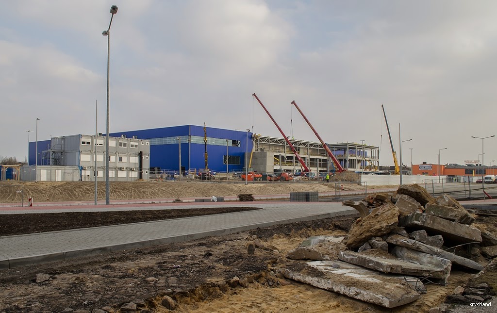 Od ostatniej relacji minął ponad miesiąc (14.01.2015). Kończy się przebudowa wiaduktów w ciągu Drogi Krajowej nr 80. Trwa budowa dróg wokół budynku marketu.
