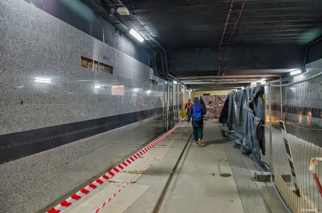 Kilka dni temu otwarto perony 4 i 4a, jednocześnie zamknięto perony 3 i 3a. W korytarzach podziemnych trwa kładzenie płytek na ściany.