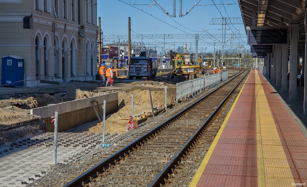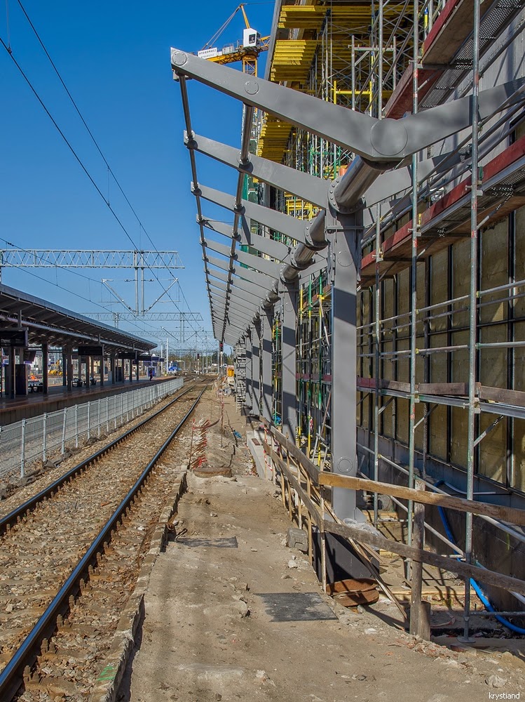 Dzisiaj rozbierany jest pierwszy żuraw na budowie dworca kolejowego. Konstrukcja budynku została skończona.