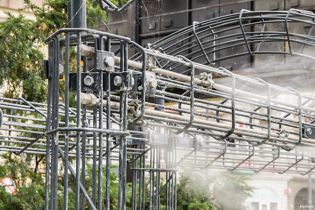 Jakiś czas temu na Placu Teatralnym pojawiły się konstrukcje, które tworzą mgiełkę. Wilgoć i słońce nie działają dobrze na farbę