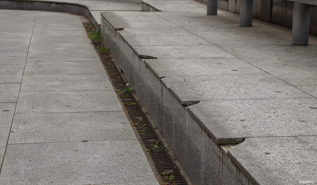 Od dawna jestem zdania, że wybudowanie czegoś to najmniejszy problem. Trzeba to jeszcze utrzymać, niestety w Bydgoszczy (i nie tylko) o tym się zapomina. Idealnie widać to po wspomnianej wcześniej Wyspie Młyńskiej. W miniony weekend jeden z użytkowników forum Skyscrapercity.com (Bydziak_1958) wrzucił zdjęcia odpadających płytek w „Międzywodziu”. Przyspieszyło to mój wpis, w którym pokarzę jak wygląda jakość wykonania i utrzymanie publicznych inwestycji. Nie ograniczyłem się tylko do Wyspy Młyńskiej, pominąłem ewidentne akty wandalizmu (czyt. malunki), bo tego jest po prostu za dużo.