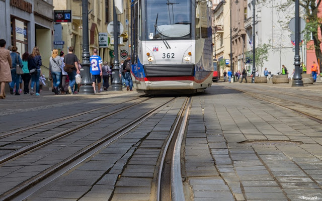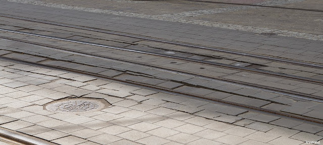 Węzeł Klaryski był remontowany całkiem niedawno. Kto korzysta z komunikacji miejskiej w centrum ten pewnie pamięta podział sieci na części. Niestety jakość wykonania nie była najlepsza, więc przeprowadzono prace gwarancyjne. Od ich zakończenia mamy takie widoki, zdjęcia nie oddają rzeczywistości, jest gorzej