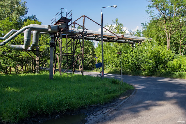 Tutaj biegły kiedyś tory kolejowe, ślady zostały już tylko w jezdni. Na terenie Zachemu było około 70 km torów kolejowych