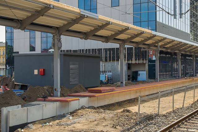 Na Dworcu Głównym praca wre. Na nowym budynku pojawia się coraz więcej elewacji, w budynku wyspowym przez okna można zobaczyć całą poczekalnię, pewnie niedługo zostanie otwarta. Powoli rozpoczynają się prace na peronie 5.