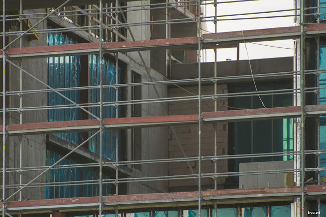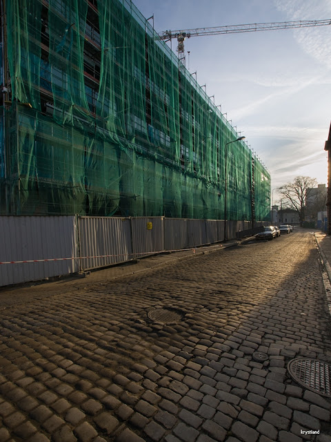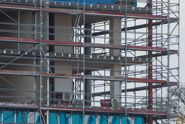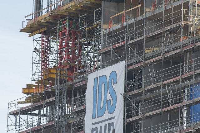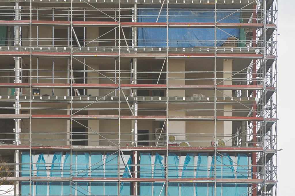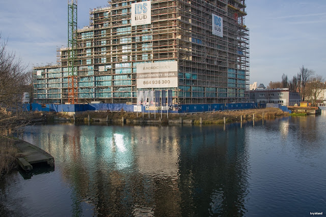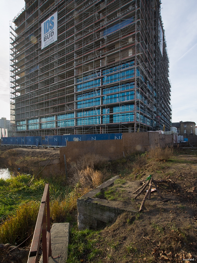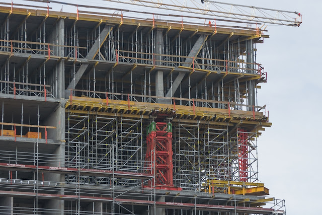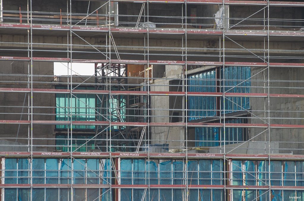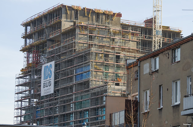 Od poprzedniej relacji z budowy najwyższego budynku mieszkalnego minęło niemal 2 miesiące (24.10.2015). Jest to dosyć długa przerwa jak na tempo prac na budowie. Elewacja jest już nie tylko na części biurowej, sporo szkła widać wyżej. Budynek urośnie jeszcze tylko o dwa piętra, prace przy przedostatnim piętrze już się rozpoczęły. Idealna niedzielna pogoda pozwoliła na sporą ilość zdjęć.