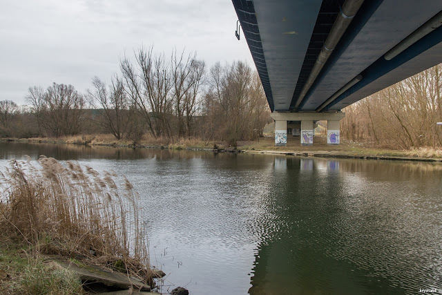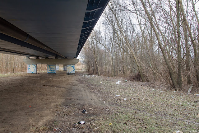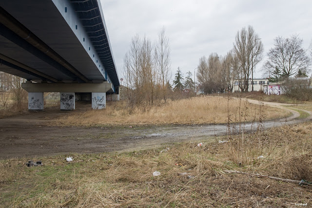 Doskonale widać jak droga się rozszerza, po wybudowaniu drugiego mostu wystarczy prawą stronę dociągnąć do przeprawy