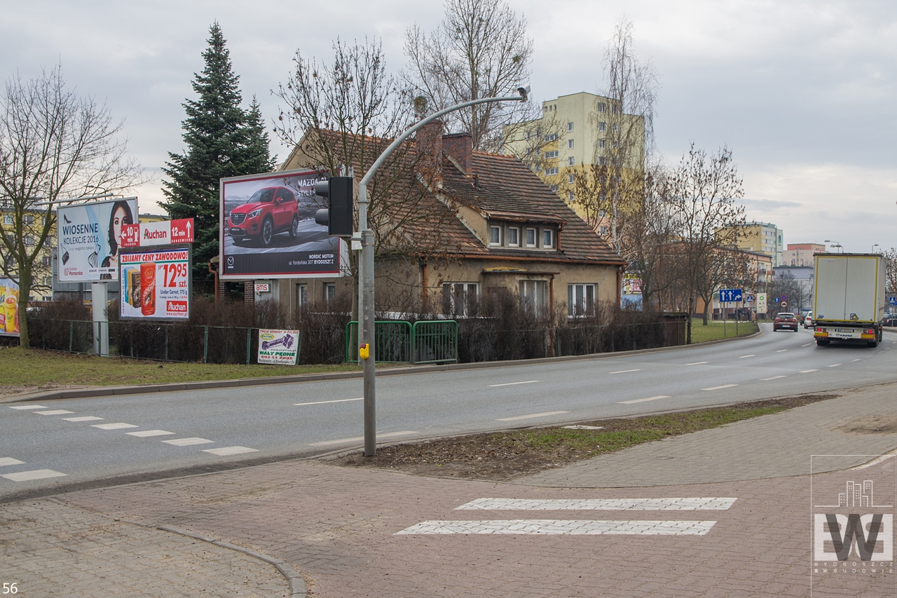 Skrzyżowanie z ulicą Gdańską. Wybudowana zostanie druga jezdnia (bliżej kamienicy) w tym samym poziomie (Wariant 1), obie jezdnia znajdą się pod ziemią, a kamienica z reklamami zostanie zburzona (Wariant 2), obie jezdnie znajdą się na wiadukcie, a kamienica z reklamami zostanie zburzona (Wariant 3).