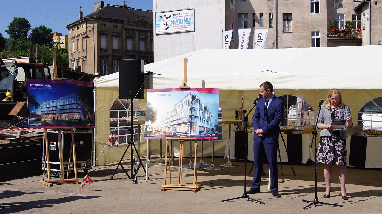 Dzisiaj przed południem na placu budowy biurowca Immobile K3 przy Placu Kościeleckich odbyła się uroczystość wmurowania kamienia węgielnego. Jest to symboliczna uroczystość rozpoczynająca budowę.