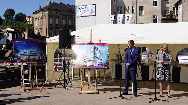 Sam ze względów zawodowych nie mogłem uczestniczyć w uroczystości, jednak dzięki wielkiej pomocy Przemka z Po Bydgosku mam okazję przedstawić Wam kilka zdjęć z tej uroczystości. Początkowe zdjęcia jednak nie przedstawiają samej uroczystości, a aktualny (sobotni) stan budowy biurowca Immobile K3.