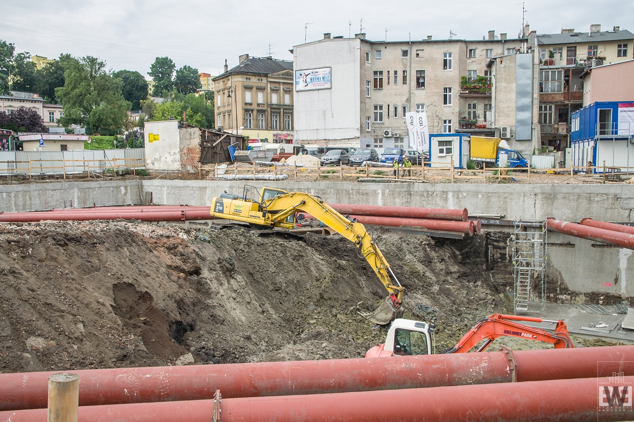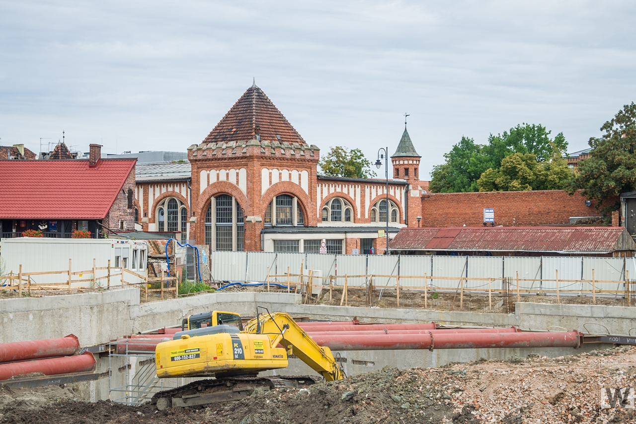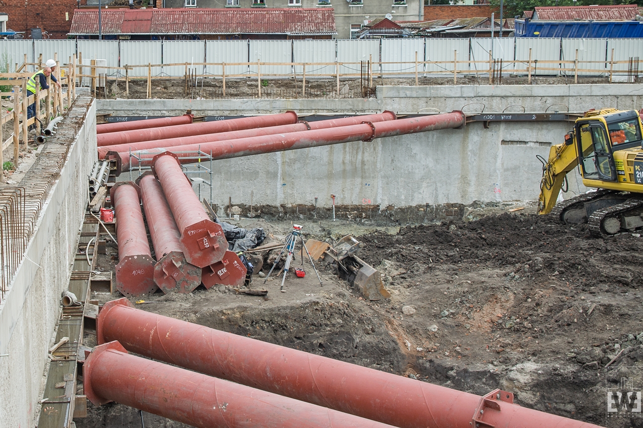 Poprzednia relacja z budowy biurowca Immobile K3 na blogu pojawiła się pod koniec czerwca we wpisie z cyklu biurowy plac budowy. Odkryto wtedy pierwsze ciekawe obiekty wyglądające na piwnice dawnych budynków. Im głębiej kopano tym ciekawsze obiekty odkrywano. Obecnie na placu budowy można zauważyć drewnianą konstrukcję. Lokalne media niedawno prześcigały się w rewelacjach na temat co tam odkryto, ja jednak poczekam aż oficjalnie zakończą się badania na tym. Odkrycie i wykopanie obiektów to nie koniec badań, one oraz prace zabezpieczające będą trwać poza placem budowy. 100% informacja o tym co tutaj znaleziono może się pojawić za wiele miesięcy. Ciekawy wpis o dbaniu o takie znaleziska i odkrywaniu historii miasta pojawił się kilka dni temu na blogu Po bydgosku: