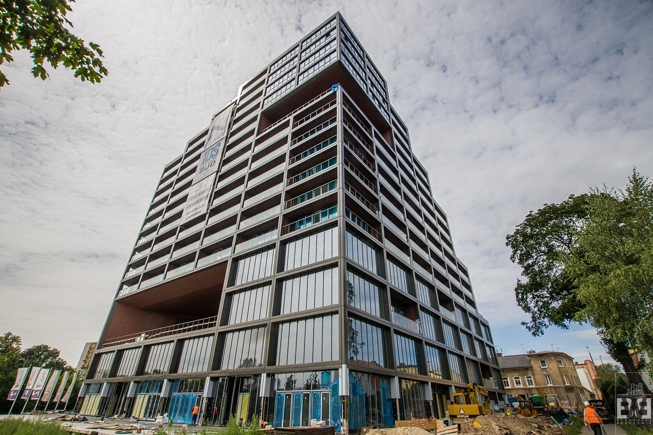 Ostatnia relacja z budowy drugiego z najwyższych budynków mieszkalnych w Bydgoszczy pojawiła się na blogu na początku czerwca (klik). Z zewnątrz nie obserwujemy już dynamicznych zmian, zniknęły już wszystkie rusztowania, obecnie trwają prace wokół budynku. Inwestycja za kilka tygodni ma być ukończona.