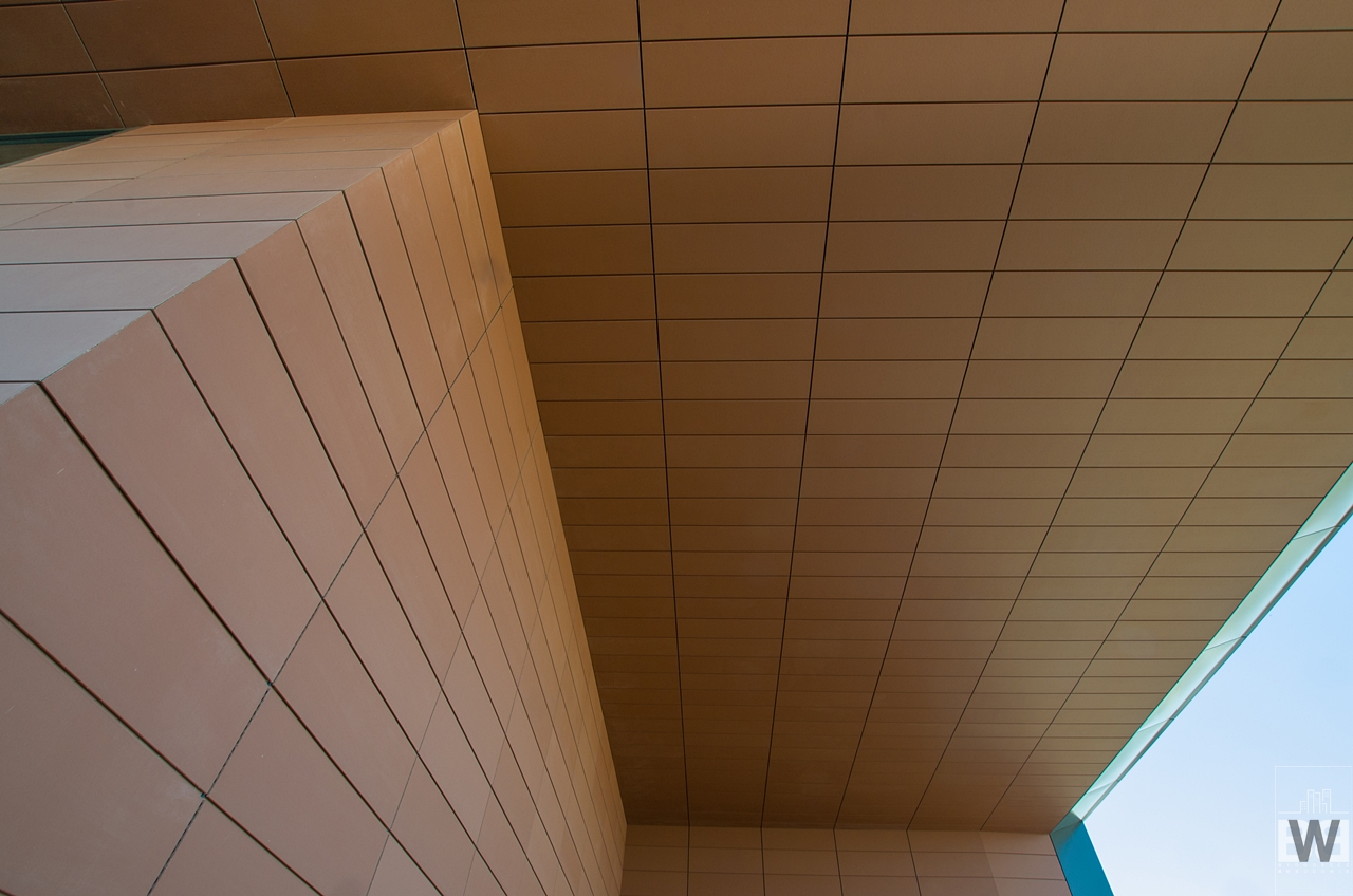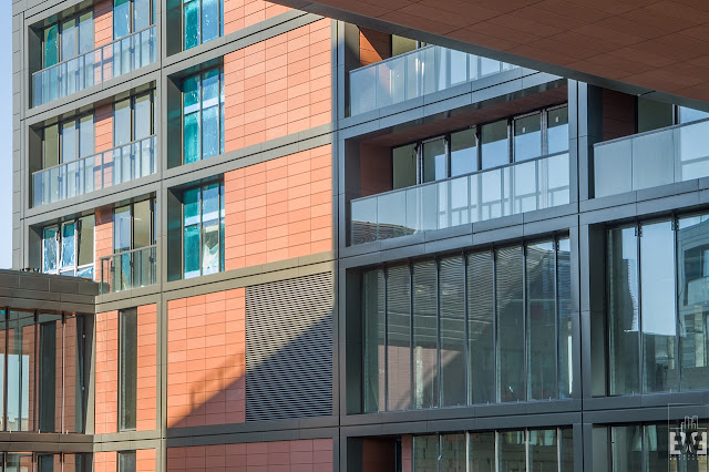 Bryła Nordic Haven została „wycięta” w dwóch miejscach na wysokości trzeciej i czwartej kondygnacji od strony wschodniej oraz jedenastej i dwunastej od strony północno-wschodniej. Niższe wycięcie będzie dostępne dla mieszkańców i wynajmujących biura. Wyższe zostało przeznaczone tylko dla mieszkańców. Jak wcześniej wspomniałem wycięcia mają wysokość dwóch pięter, dopiero po wejściu na nie czuć ich ogrom. Poniżej możecie zobaczyć widoki na miasto oraz kilka zbliżeń na elementy wykończeniowe ścian z wyższego wycięcia.