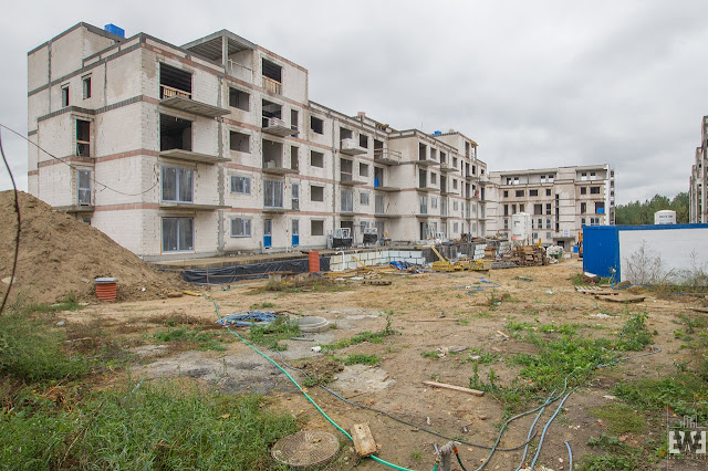 Osiedle Olimpijczyków – zespół budynków mieszkalnych przy ulicy Bydgoskich Olimpijczyków. Podczas mojej ostatniej wizyty generalny wykonawca zabierał swoje baraki z budowy. Na przestrzeni trzech miesięcy widać, że coś się dzieje na budowie (wylano schody przy jednym budynku, strop przy łączniku budynków), widać również ślady wyjeżdżających samochodów z budowy. Jednak tempo jest raczej powolne, co ciekawe w jednym z budowanych budynków otwarte są te same okna (wrzuciłem zdjęcie porównawcze). W całym kompleksie ma powstać 120 mieszkań, czy budowa wszystkich budynków zostanie ukończona tego nie wiadomo. Ostatnie zdjęcia z budowy pojawiły się na stronie w lipcu