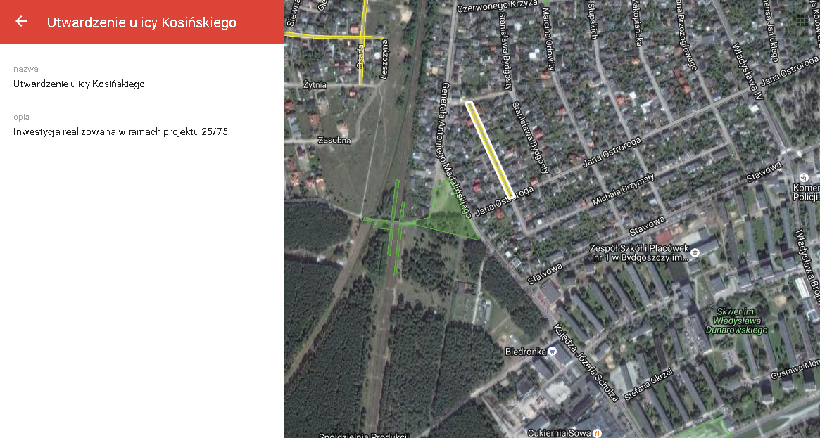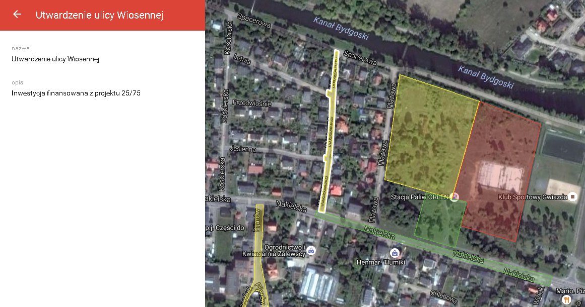 Zamieszczone zdjęcia map z kolorowo zaznaczonymi inwestycjami to zrzuty z mapy inwestycji dostępnej na blogu (klik).