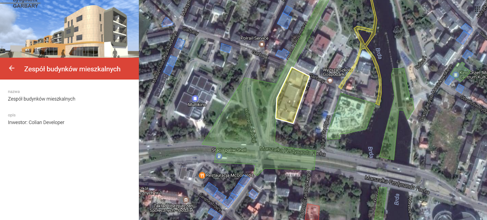 Pod opisem inwestycji i wizualizacją (jeśli taka jest dostępna) umieszczony został zrzut z mapy inwestycji z dokładną lokalizacją.