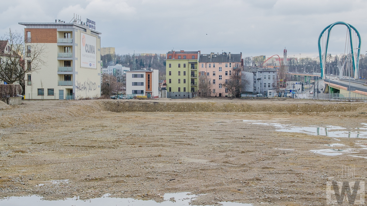 Fordońska 4 – w Bydgoszczy ostatnio zaczynają być budowane coraz wyższe budynki. Pierwszą inwestycję ponad 10-piętrową w XXI wieku zrealizowała firma Arkada-Invest (Atrium Park, 12 pięter). Kilka tygodni temu zakończyła się budowa Nordic Haven (55 metrów wysokości), a obecnie trwa budowa River Tower (65 metrów wysokości) oraz 45-metrowych biurowców Arkada Business Park (zdjęcia z wizyty na budowie już we wtorek na blogu). Wysoko również ma być tuż obok nowych biurowców w miejscu gdzie miało powstać centrum medyczne Intercor (firma zbankrutowała). Doszły mnie głosy, że nowy właściciel – notowana na giełdzie spółka Mirbud planuje tutaj aż trzy budynki mieszkalne, prawdopodobnie o wysokości 55 metrów lub niewiele niższe. Wiadomo, że na działce ma powstać około 300 mieszkań. W czwartek wieczorem poprosiłem inwestora o komentarz na temat liczby budynków, jak tylko otrzymam odpowiedź to poinformuję o tym na Facebooku