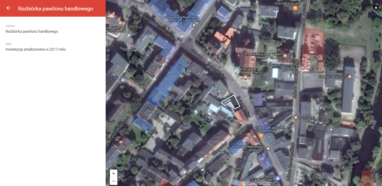 Pod opisem inwestycji i wizualizacją (jeśli taka jest dostępna) umieszczony został zrzut z mapy inwestycji z dokładną lokalizacją.