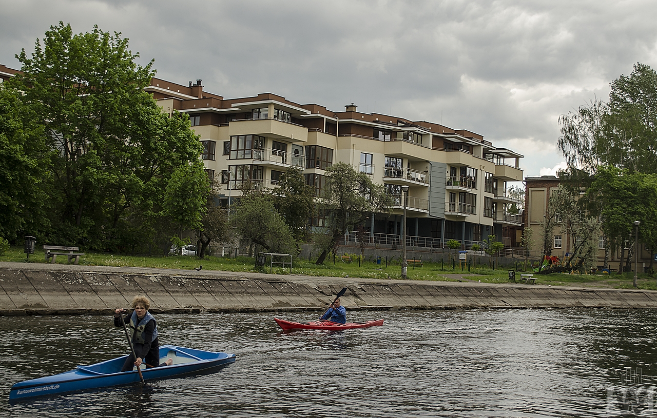 - Optimum Park – kompleks biurowy w skład którego wchodzi Wyższa Szkoła Bankowa (gospodarz wydarzenia), poniższy widok jest niemal z brzegów rzeki
