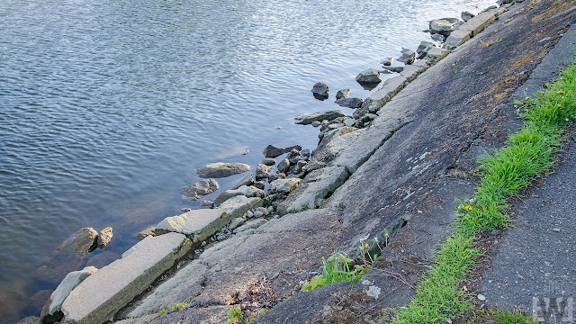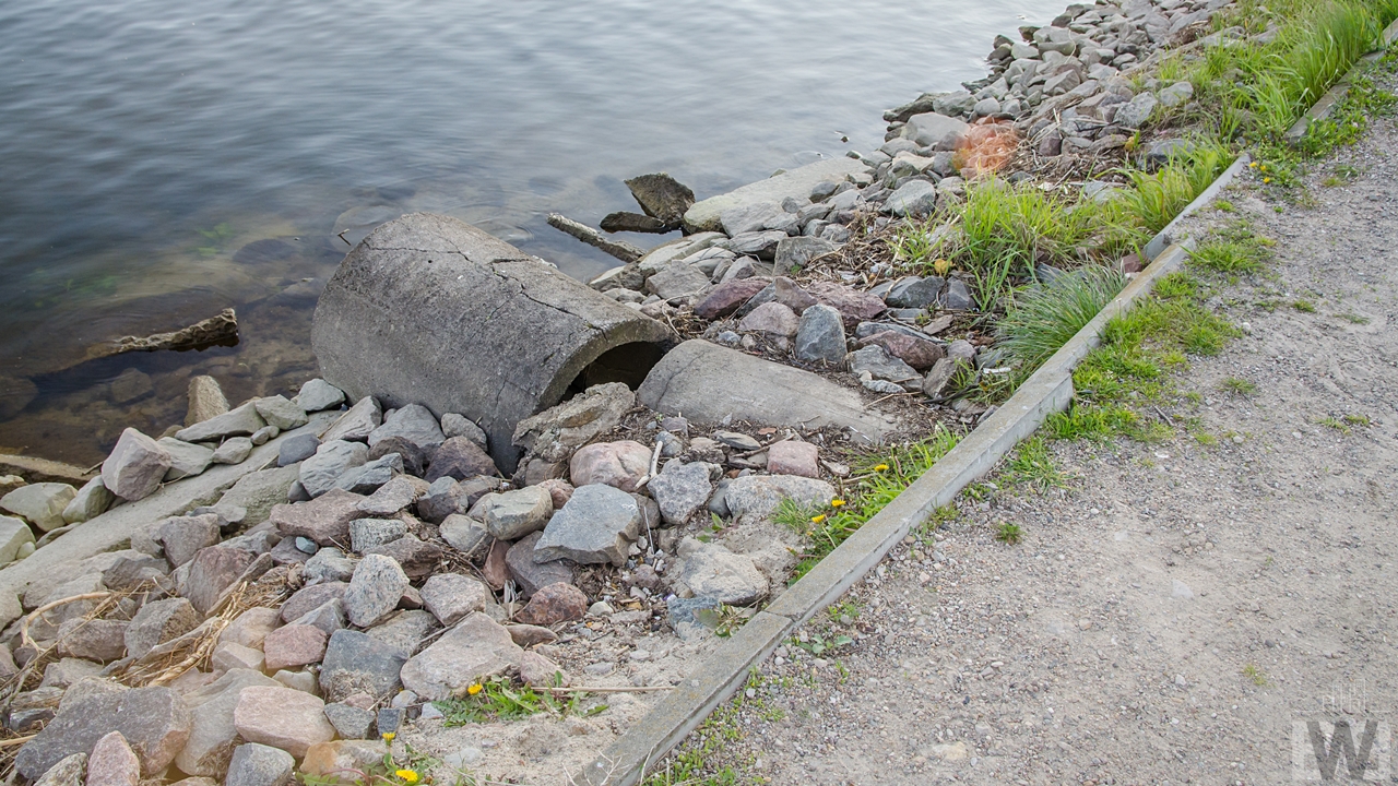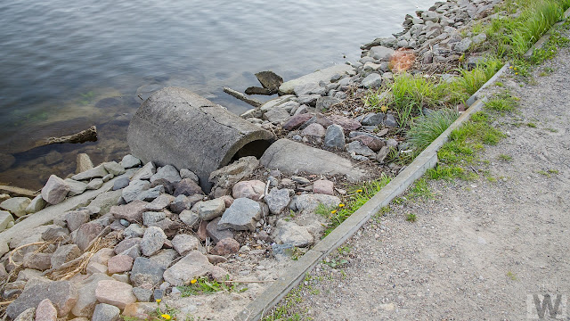 Na kilku kolejnych zdjęciach zobaczycie sporo kamieni na nabrzeżu. To efekt bardzo kiepskiej naprawy bulwarów z 2014 lub 2015 roku. Po tamtych pracach przez kilka tygodni przejazd rowerem nie należał do najłatwiejszych (wysypano dużo drobnego kamienia, w które opona wpadała jak w piasek). Po zaledwie 2/3 latach od naprawy bulwar jest w gorszym stanie niż przed