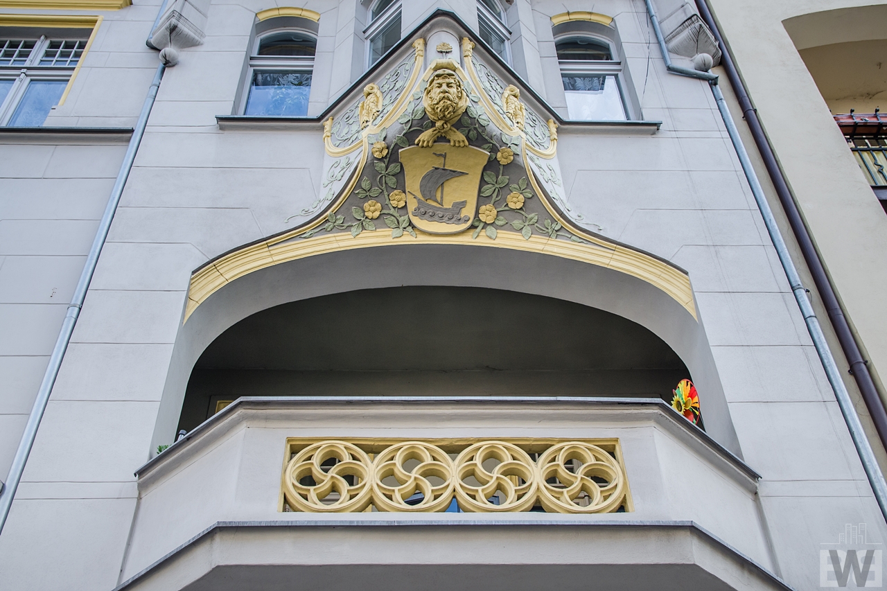 Kolejna kamienica przechodząca właśnie remont, prace trwają w środku. Budynek powstał w latach 1898-1899 według projektu Fritz Weidnera, charakterystyczną ozdobą umieszczoną na jednym z narożników budynku jest rzeźba halabardnika, symbolicznego opiekuna i strażnika domu