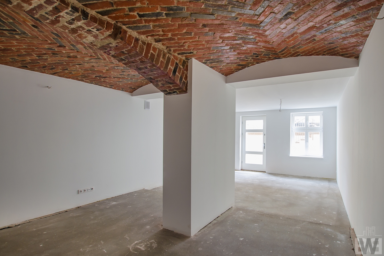 | Wnętrza jednego z przyszłych lokali usługowych w piwnicy budynku |
