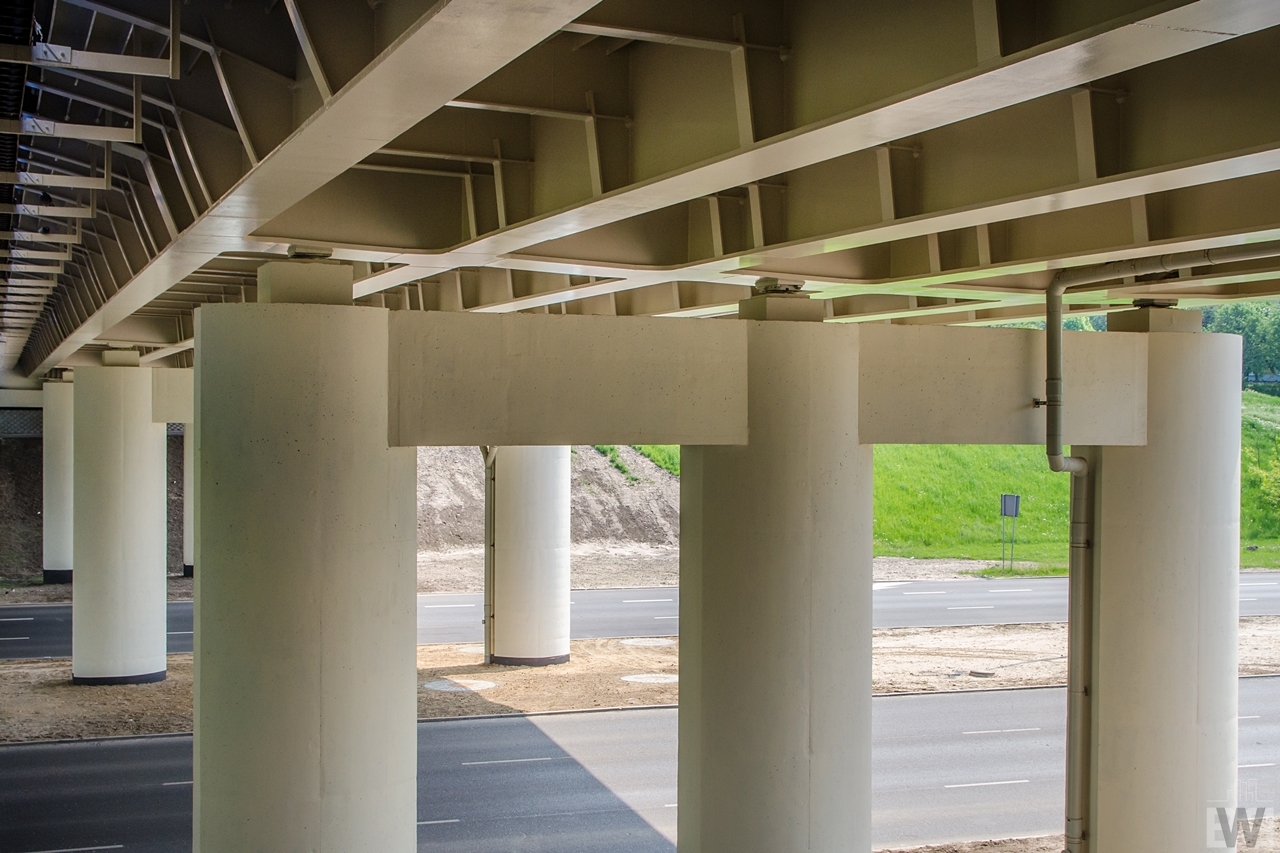 Kilkadziesiąt lat temu kiedy budowano wiadukty zapomniano o budowie chodnika na południowym wiadukcie, dlatego jeden z pasów został odgrodzony tymczasowymi betonowymi barierkami. Po zakończonej ostatnio budowie przywrócono kierowcom trzeci pas, natomiast piesi i rowerzyści otrzymali nową, szerszą drogę. Dawny wiadukt podtrzymywany był filarami z dwoma „nogami”, nowy z trzema. Betonowy wiadukt został zastąpiony przez stalowy.