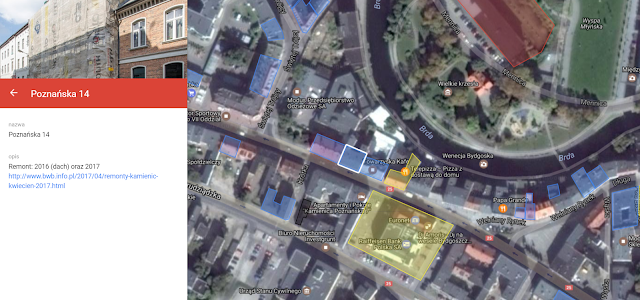 Patrząc na centrum Bydgoszczy z góry możemy zobaczyć morze kamienic. Morze o które zaczęliśmy dbać zaledwie kilka lat temu, po kilkudziesięciu latach przerwy. Wiele budynków jest w opłakanym stanie, jednak coraz szybciej się to zmienia, ciężko nadążyć za ekipami budowlanymi, które co chwilę rozstawiają nowe rusztowania. Dzisiaj możecie zobaczyć 18 trwających lub zakończonych remontów