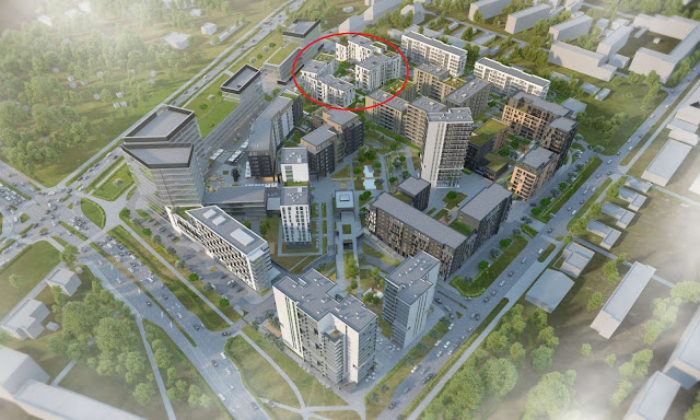 Wkrótce ma się rozpocząć budowa Etapu II (następne dwa budynki mieszkalne na prawo od czerwonego okręgu). Inwestorem jest firma CDI, która należy do grupy kapitałowej Immobile. Znikająca fabryka Makrum również należy do tego grupy.