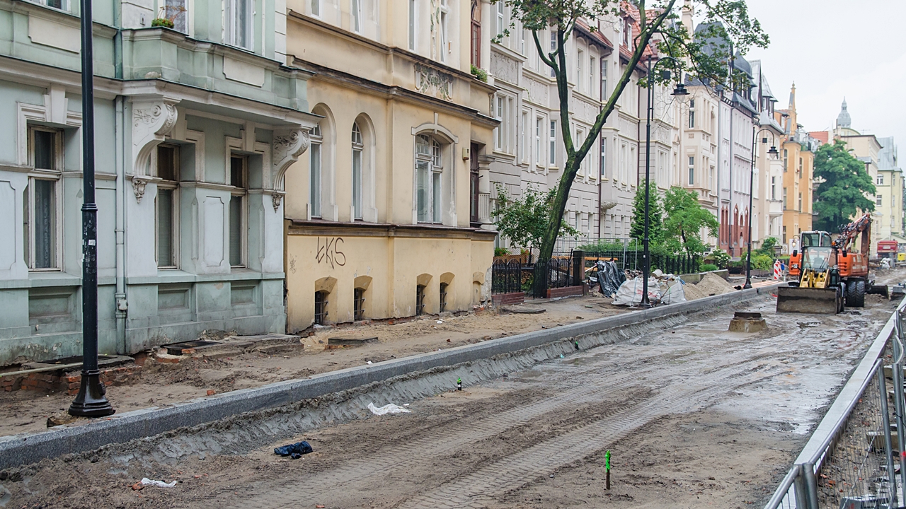 W bydgoskim śródmieściu trwa remont jednej z najładniejszych ulic – ulicy Cieszkowskiego. Inwestycję rozpoczęto pod koniec ubiegłego miesiąca, na budowie pojawiły się nowe krawężniki