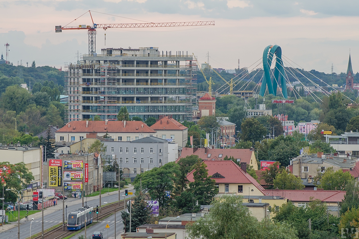 Arkada Business Park – budowa jednego z największych kompleksów biurowych w mieście. Inwestycja rozpoczęła się w sierpniu ubiegłego roku, w tym czasie wykonano niemal w całości konstrukcję pierwszego budynku o wysokości 45 metrów, obecnie trwa instalacja elementów elewacji. Arkada Business Park to dwa bliźniacze budynki w których znajdzie się niemal 20 000 m2 powierzchni biurowej, powstają one przy jednym z najważniejszych rond w mieście. W miniony piątek odwiedziłem budowę, efekty tych odwiedzin zobaczycie jutro lub w środę na blogu