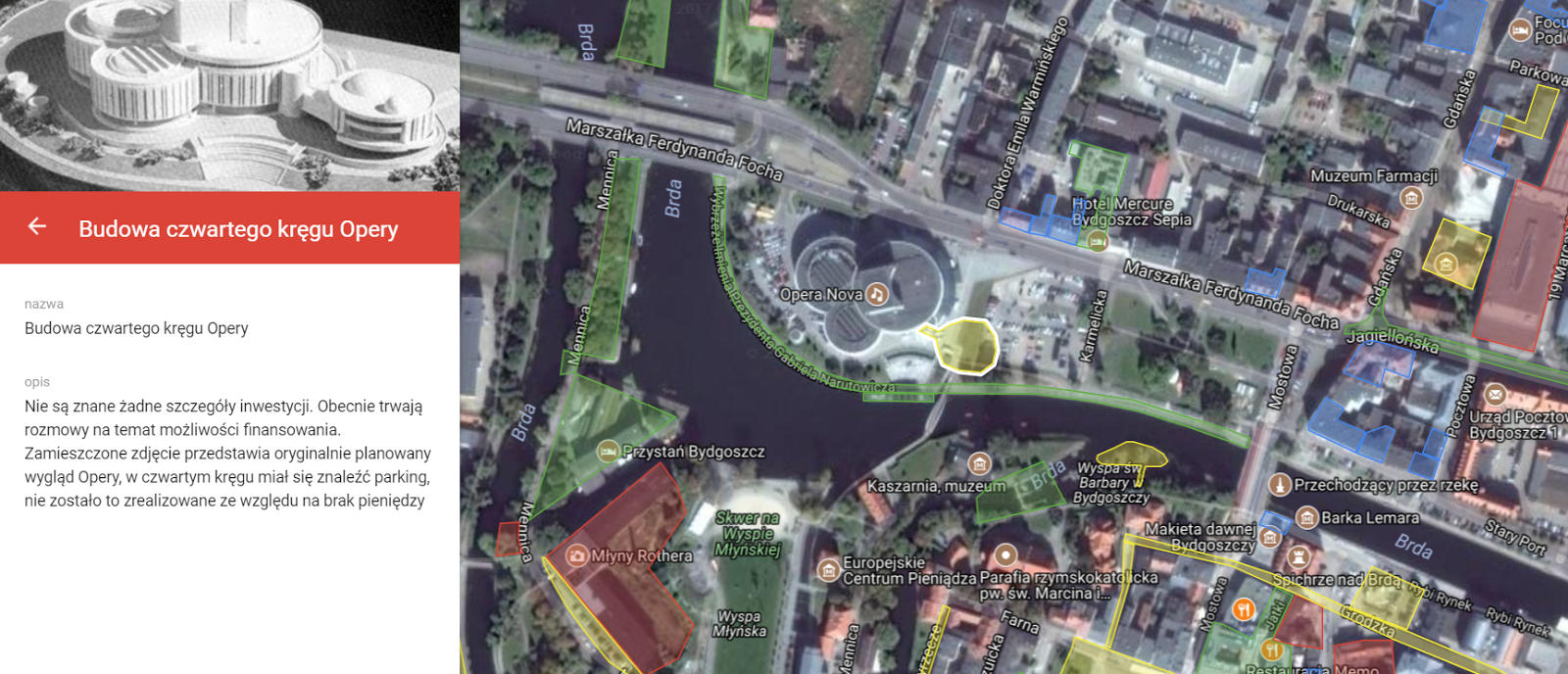 Pod opisem i wizualizacją umieszczony został zrzut z mapy inwestycji z dokładną lokalizacją. Inwestycje podzieliłem na obecnie realizowane i planowane.