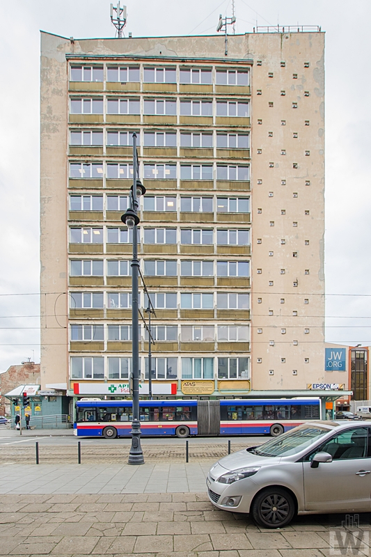 Na szczęście wkrótce się to zmieni. Budynek dalej będzie się rzucał w oczy, ale nie będzie już zniszczony. W ostatnich dniach października właściciel budynku – LOCUM S.A. otrzymał pozwolenie na remont i docieplenie elewacji. Informowałem o tym w nowym, niedzielnym cyklu „To warto wiedzieć„. Dopytywaliście wtedy jak będzie wyglądał budynek po remoncie.
