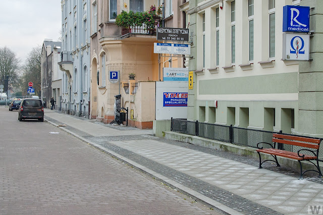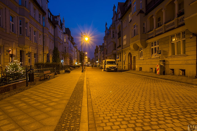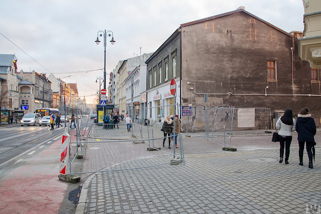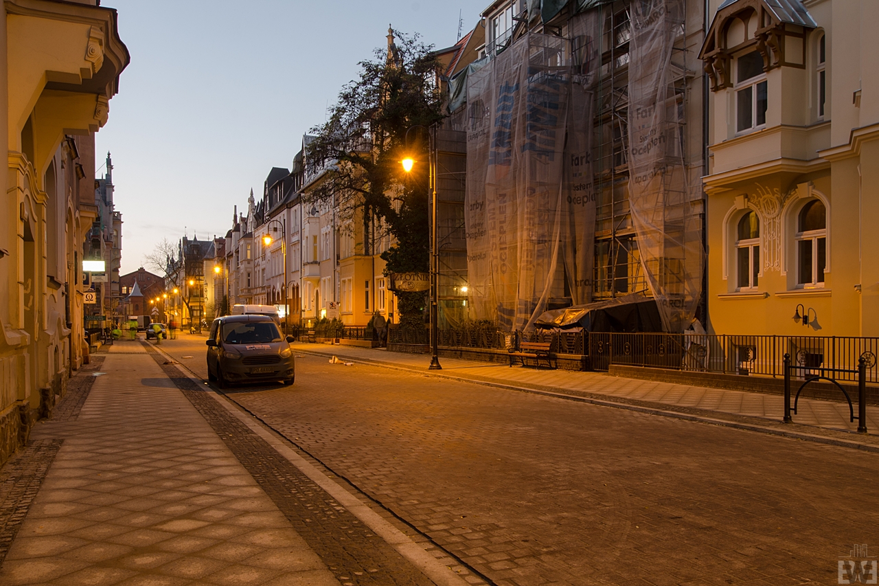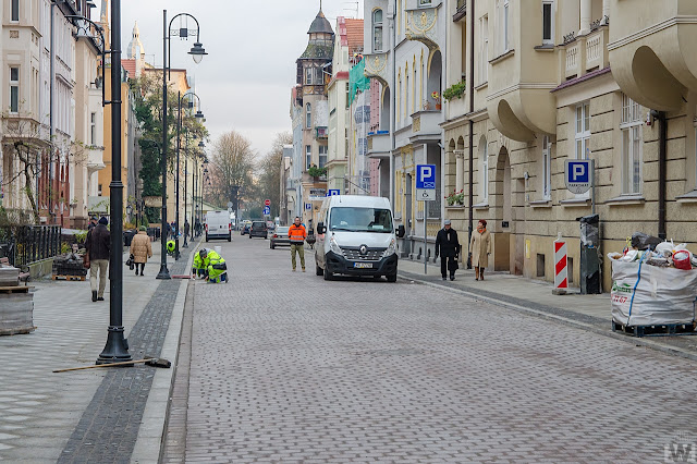 Na końcu umieszczono zdjęcia wykonane po włączeniu oświetlenia ulicznego. Mimo, że nie było jeszcze bardzo ciemno to ulica sprawiała wrażenie niedoświetlonej. Żółte oświetlenie sprawia bardzo dziwne, nieprzyjemne wrażenie. Po tym jak po południowej stronie zaparkują samochody (lampy są po północnej) spacer pomiędzy nimi, a południową pierzeją nie będzie zbyt komfortowy. Szczególnie jak będą stać jakieś wyższe busy.