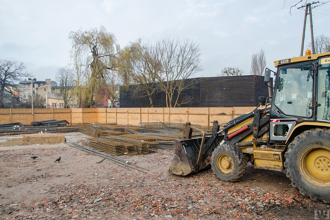 Kilkanaście dni temu na pobliskiej ulicy Babia Wieś i jednym z budynków mieszkalnych pojawiło się pęknięcie. Z tego powodu ulica częściowo została wyłączona z ruchu, większość prac na budowie została wstrzymana do wyjaśnienia przyczyn powstania pęknięć. Wykonawca jednak nie wstrzymał całkowicie prac, część wykopu jest na tyle głęboka, że możliwe jest układanie zbrojenia. Od ostatniej, październikowej relacji na budowie pojawił się pierwszy żuraw budowlany. Dzięki czemu można sobie mniej więcej wyobrazić wysokość powstającego budynku (żuraw jest nieco wyższy niż będzie budynek).