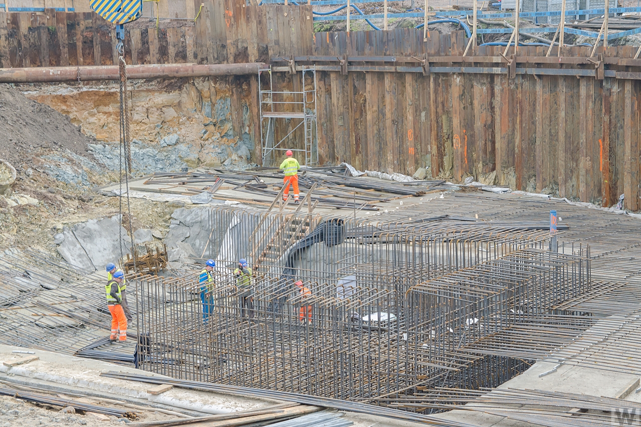 Trwa budowa jednego z wyższych budynków mieszkalnych w mieście. Na głębokości drugiego piętra zaczyna pojawiać się pierwsze zbrojenie.