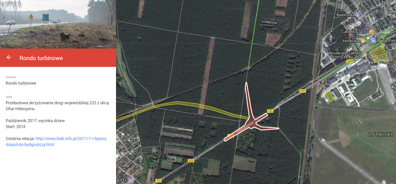 Rozpoczęła się budowa ronda turbinowego na drodze wojewódzkiej 223, będącej drogą wyjazdową z Bydgoszczy w stronę Szubina, Żnina, Poznania